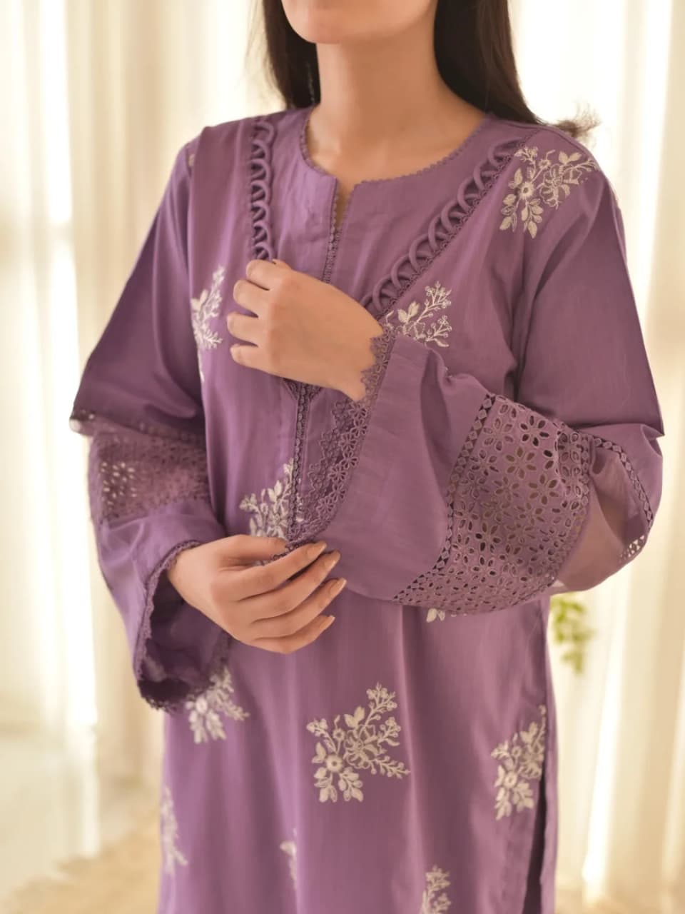 3pc Fully embroidered shirt with lace/loop detail on the neckline