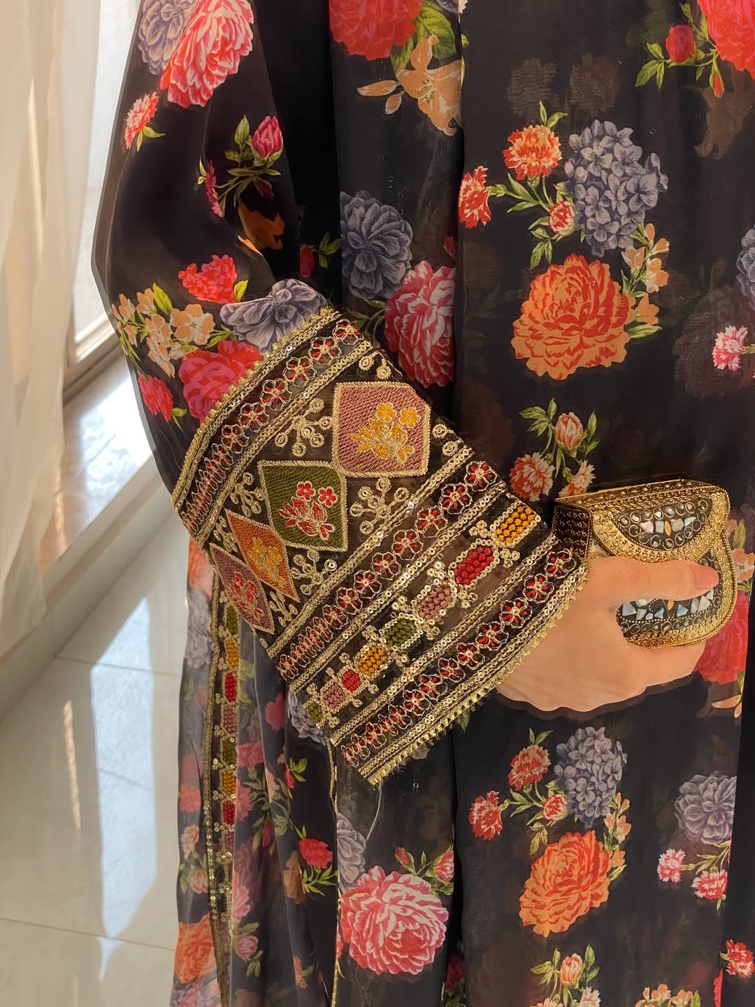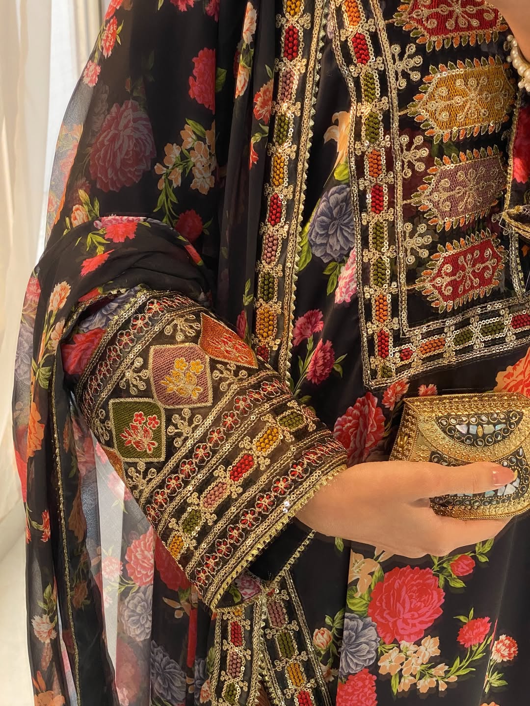 ✨ Color: Black with Multicolor Embroidery