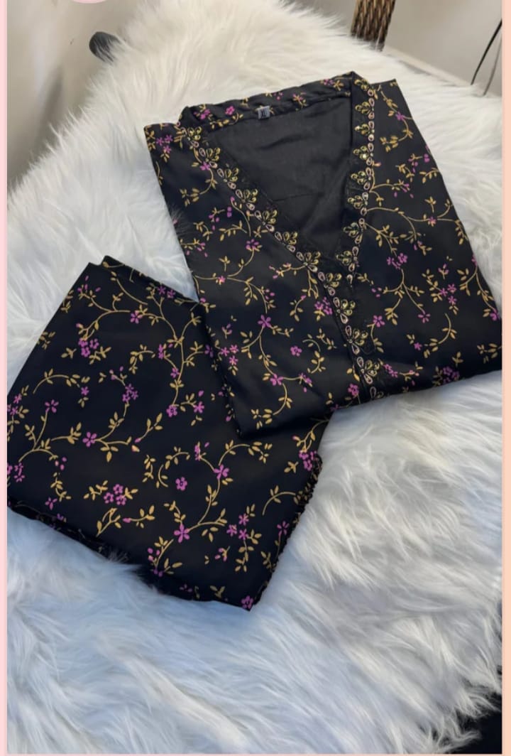 Crafted in breathable Winter Linen, this elegant 2-piece features a long shirt with embroidered neck and side patches, paired with a matching trouser. Perfect for effortless Winter